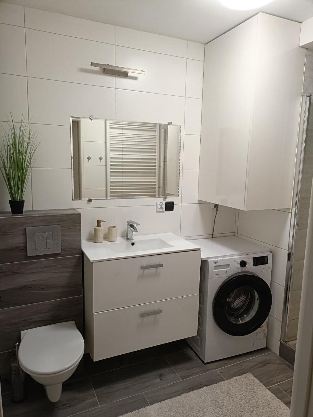Apartament z 1 sypialnią. Featuring a private entrance, this air-conditioned apartment is comprised of 1 living room, 1 separate bedroom and 1 bathroom with a shower and a hairdryer. The fully equipped kitchen features a stovetop, a refrigerator, a dishwasher and kitchenware. Boasting a balcony with city views, this apartment also offers a washing machine and a flat-screen TV with streaming services. The unit offers 3 beds. Apartament - 6 osobowy. Powierzchnia pokoju ok.: 47 mkw.