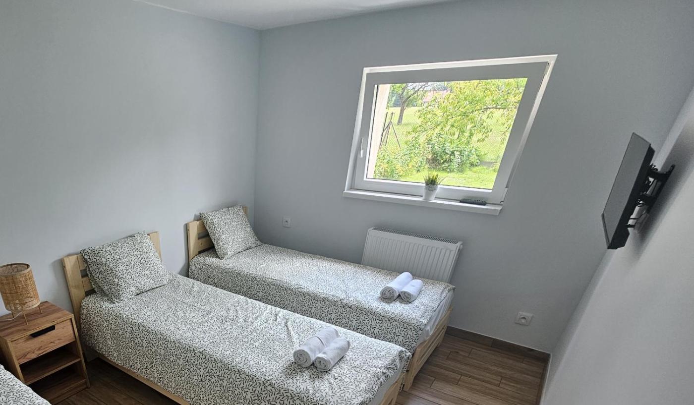 Dom z 2 sypialniami. This holiday home features 1 living room, 2 separate bedrooms and 1 bathroom with a bath and free toiletries. In the well-equipped kitchen, guests will find a refrigerator, a dishwasher, an oven and a microwave. Boasting a balcony with garden views, this holiday home also features a washing machine and a flat-screen TV with streaming services. The unit has 5 beds. Dom wakacyjny - 9 osobowy. Powierzchnia pokoju ok.: 100 mkw. ;
