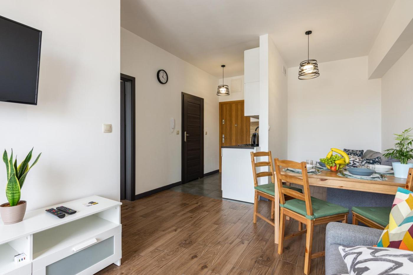 Apartament z 1 sypialnią. In the well-fitted kitchen, guests will find a stovetop, a refrigerator, kitchenware and a microwave. Boasting a balcony with city views, this apartment also features a private entrance and a flat-screen TV. The unit has 3 beds. Apartament - 6 osobowy. Powierzchnia pokoju ok.: 32 mkw.