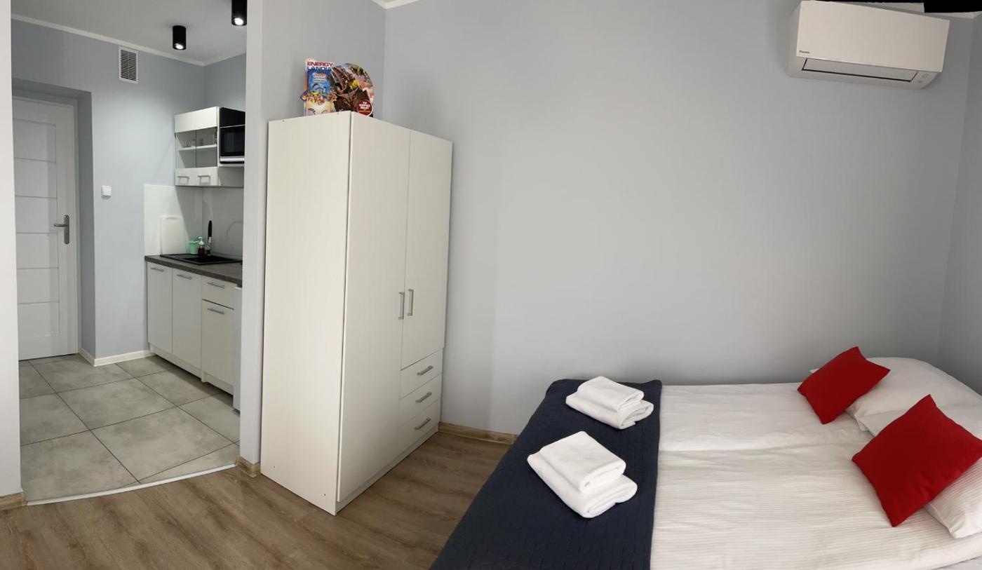 Pokój czteroosobowy z prywatną łazienką. In the kitchenette, guests will find a stovetop, a refrigerator, kitchenware and a microwave. The quadruple room offers air conditioning, a wardrobe, a balcony with a quiet street view as well as a private bathroom boasting a shower. The unit has 3 beds. Pokój Czteroosobowy - 4 osobowy. Powierzchnia pokoju ok.: 15 mkw.